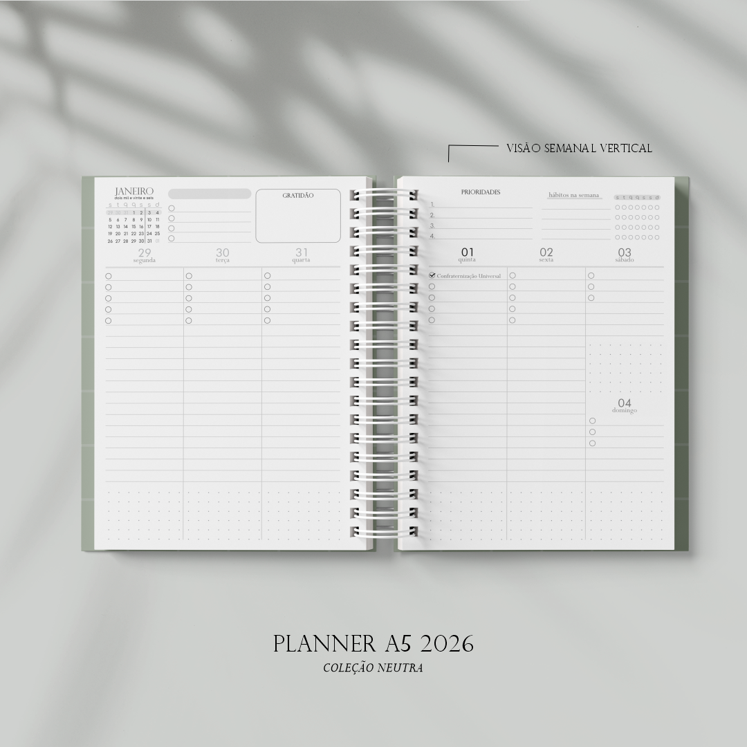 Em meio à correria do dia a dia, manter a organização é essencial para alcançar nossos objetivos com mais leveza e clareza. Um planner é muito mais do que uma agenda: ele é uma ferramenta de autoconhecimento, produtividade e bem-estar. Ao planejar sua rotina, você ganha tempo, reduz o estresse e transforma metas em conquistas reais. Seja para organizar tarefas, compromissos ou sonhos, o planner é seu aliado para viver com mais propósito e equilíbrio.